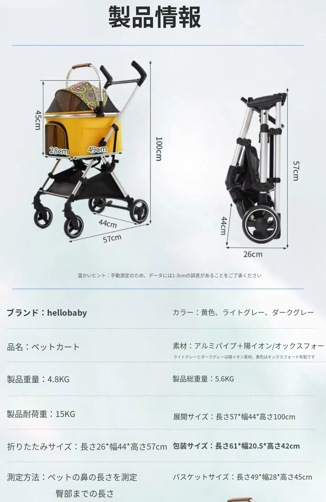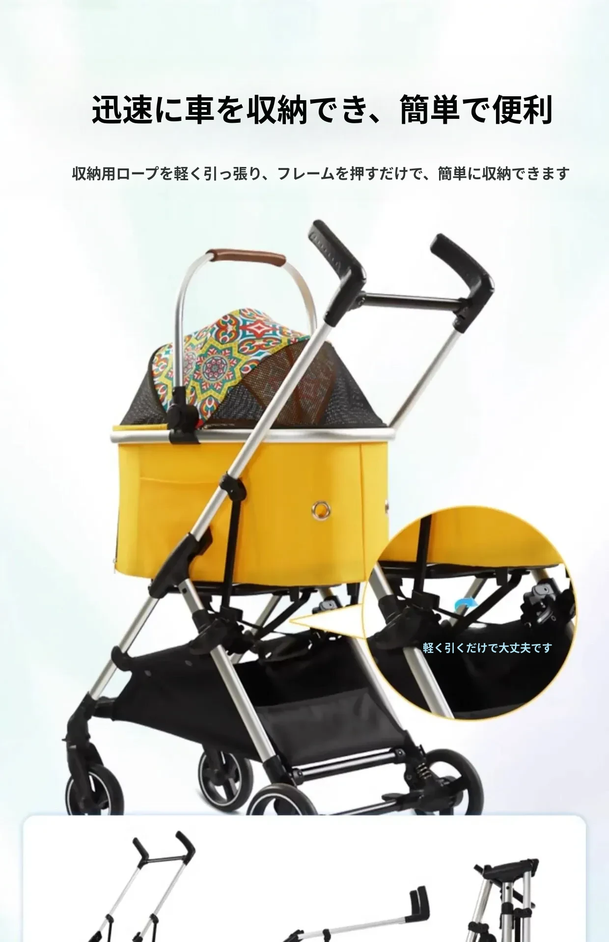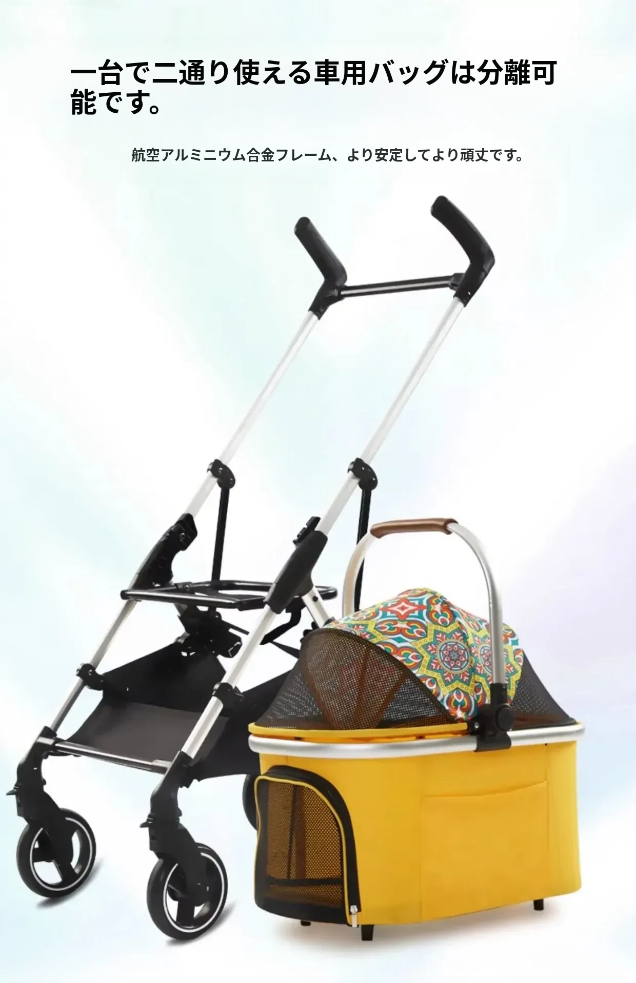 ペット用軽量折りたたみ式キャリーカー - 小型犬向け、旅行に最適!便利な分離機能付き、脱出防止設計で安心。お出かけをもっと楽しく!