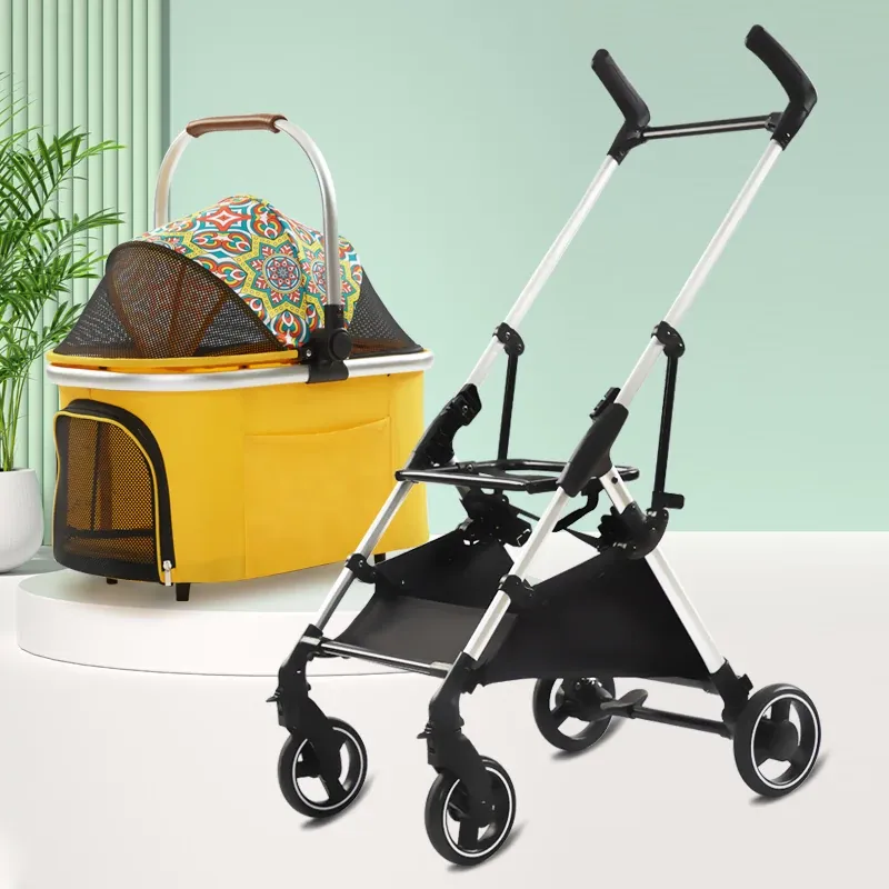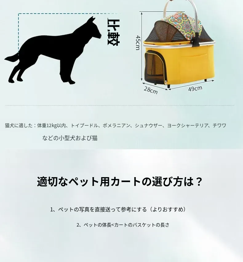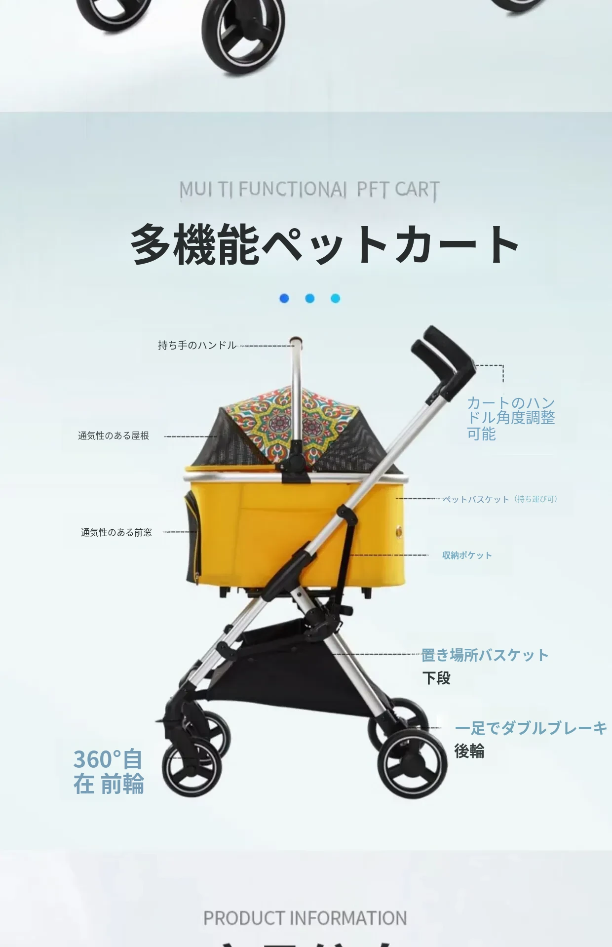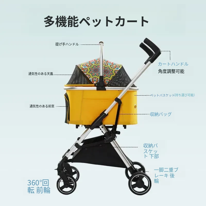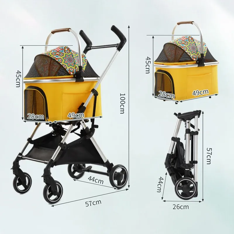 ペット用軽量折りたたみ式キャリーカー - 小型犬向け、旅行に最適!便利な分離機能付き、脱出防止設計で安心。お出かけをもっと楽しく!